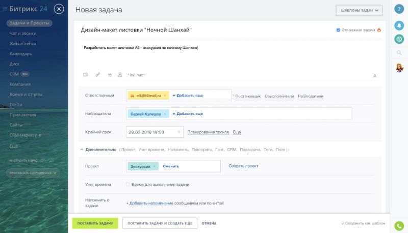 Задачи и проекты помогают работать вместе и успевать вовремя. Если задача поставлена в Битрикс24, она будет выполнена.