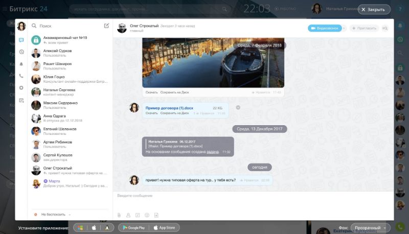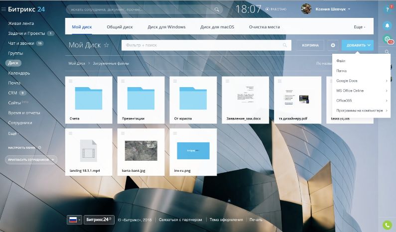 помогает работать вместе: чат, диск, календарь, группы, рабочие отчеты, бизнес-процессы и другие инструменты для совместной работы.