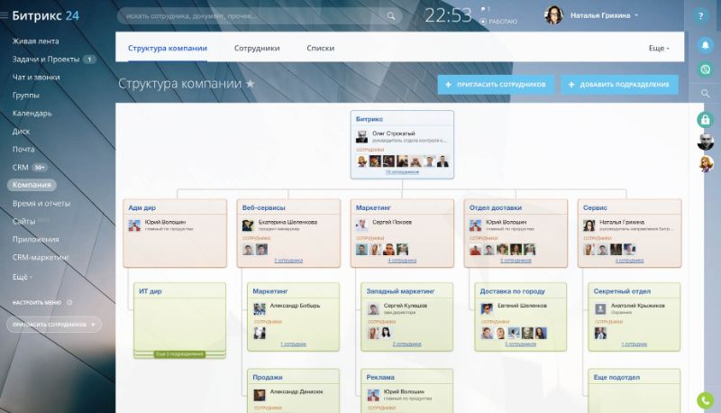 Визуальная структура не только показывает иерархию в компании, но и правильно распределяет права доступа.