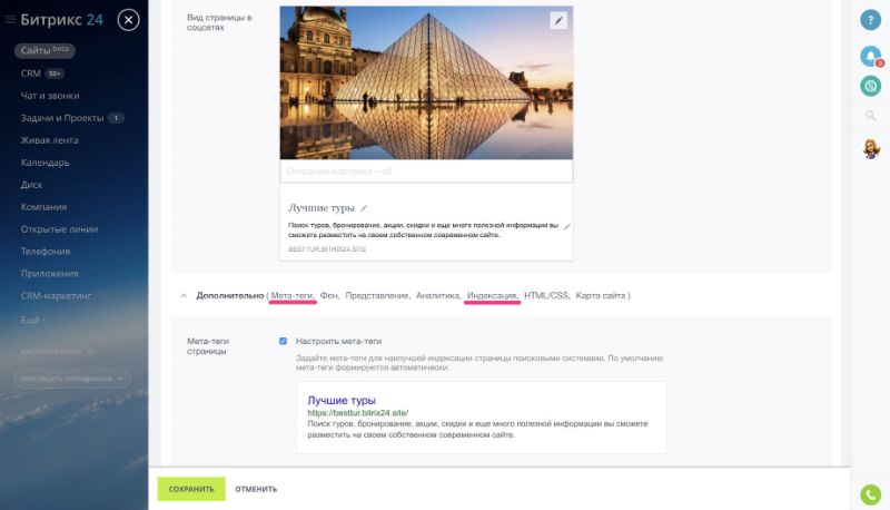 В Битрикс24 сайты создаются сразу с правильной разметкой и будут правильно индексироваться поисковиками.