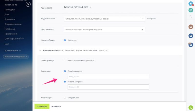 В один клик в настройках подключите Яндекс.Метрика и Google.Analitycs, чтобы получать полную статистику по сайту.